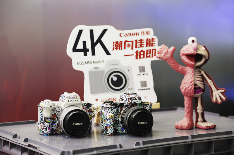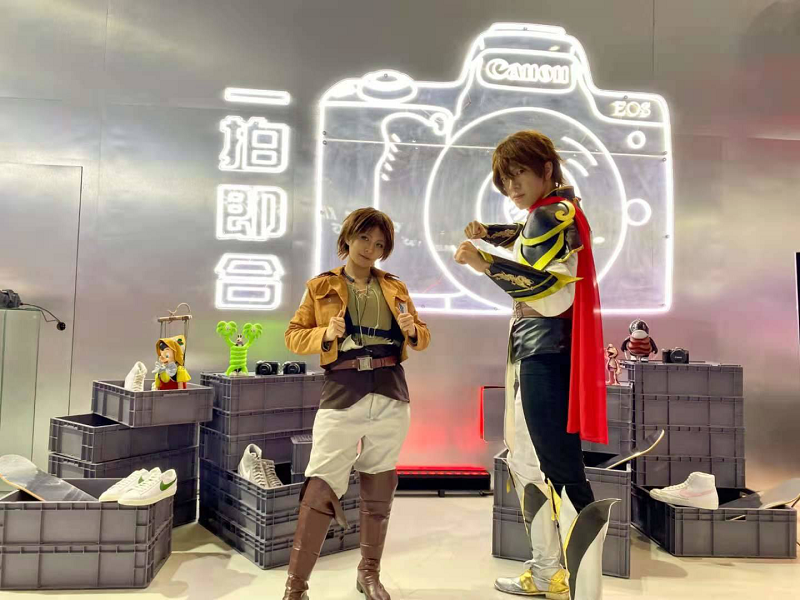 在相机状霓虹灯墙下,佳能的新款全画幅专微旗舰相机EOS R5、全新上市的微单EOS M50 Mark II,以及网红Vlog相机Powershot G7 X Mark III等,与潮流单品一同亮相展台,充满青春活力。霓虹环绕,复古、新潮、经典、个性尽数收入取景框中,成为了全场观众必去的打卡地,现场活动Coser与知名网络红人纷纷慕名前来,不放过这一与潮流影像“共影”的大好机会。