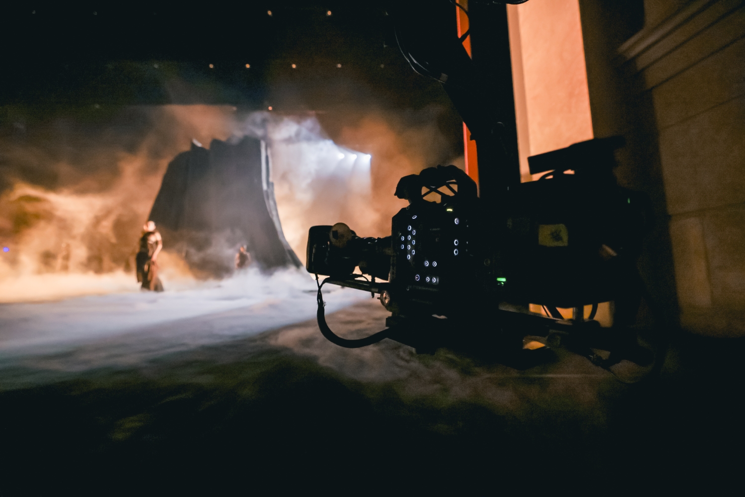 团队在前期测试中,基于佳能EOS C400的三种基础ISO模式,为不同幕次的灯光氛围建立了独立工作模式。高光占比场景选择低基准ISO以获得更高的信噪比;而在暗场或局部补光段落,则启用更高感光档位,以确保暗部细节不被压缩。部分机位采用固定光圈以锁定景深,通过微调ISO匹配曝光,从而在复杂灯光变化中保持影像的景深一致与情绪延续。