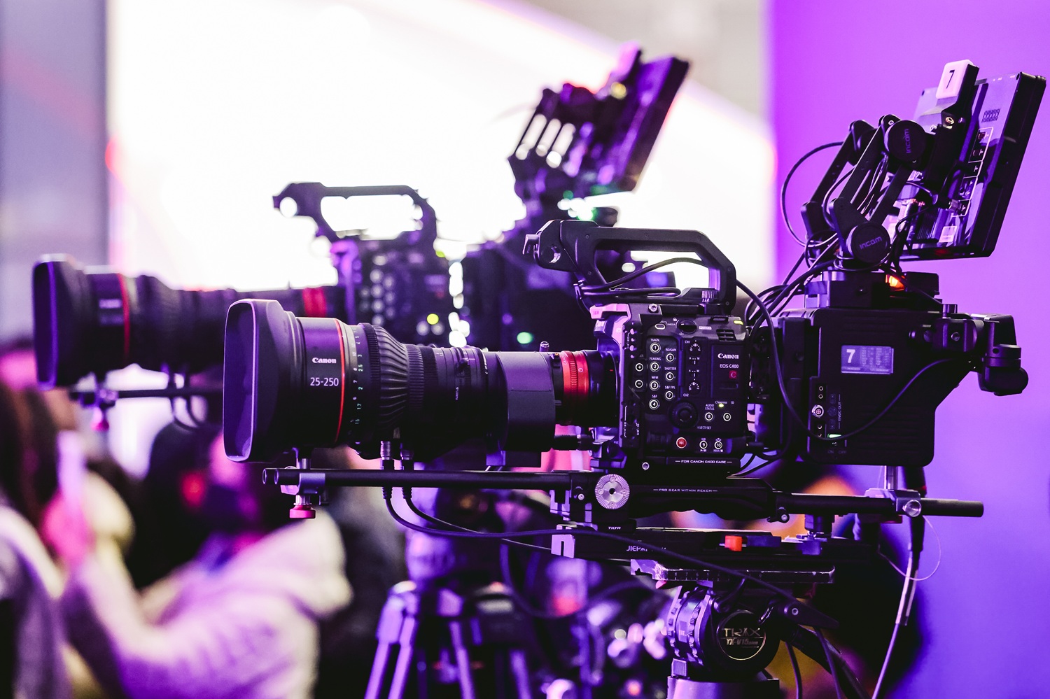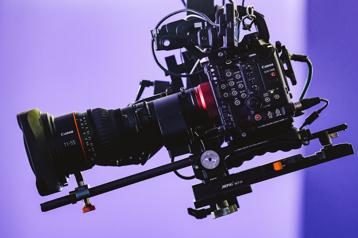 佳能EOS C400搭配CN5×11 IAS T伺服变焦镜头在摇臂上工作