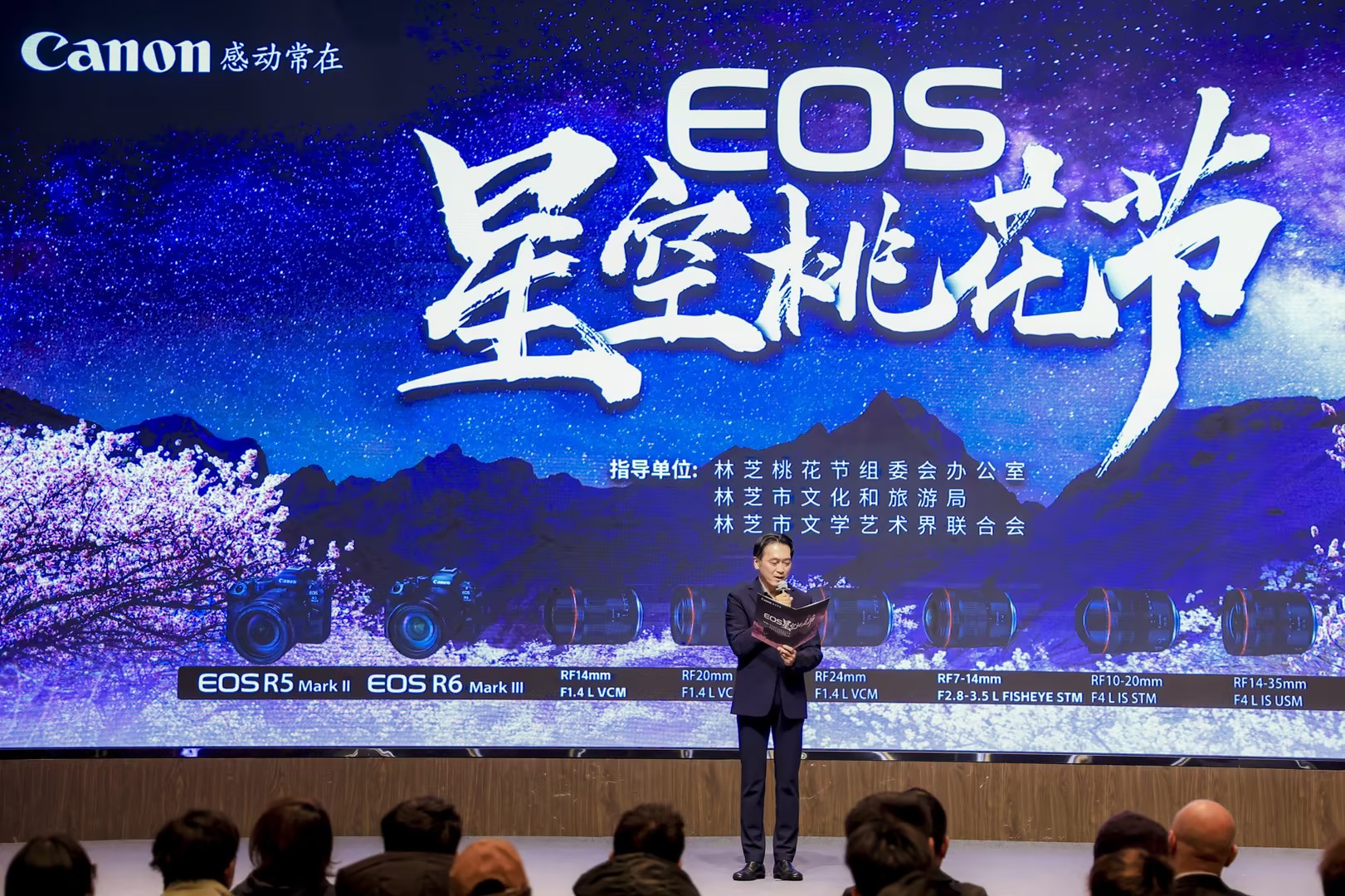 2026年3月21日,正值西藏林芝第二十三届桃花旅游文化节前夕,佳能*1“EOS星空桃花节”在林芝市正式启幕。活动上,佳能“EOS风光影像创作基地”揭牌成立,该基地将作为连接专业摄影师、摄影爱好者与林芝壮美景色的桥梁,通过持续开展主题作品征集、摄影交流与实地教学等活动,打造一个长效、专业的影像创作与分享平台。林芝市文化旅游投资发展有限责任公司党委书记、总经理兰长安、林芝市旅游协会会长陈保清、林芝市摄影家协会副主席王刚以及佳能(中国)有限公司高级副总裁平野英治出席了启幕仪式并致辞。