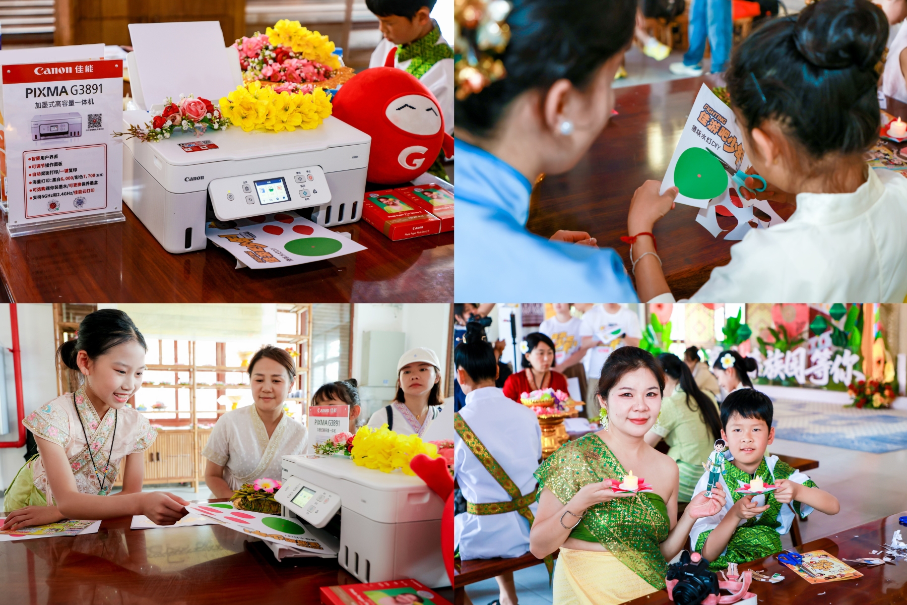 制作傣族祈福水灯是本次体验的重要环节之一,亲子研学团先跟随非遗老师了解傣族水灯的文化渊源以及水灯的文化寓意,随后亲手制作了一盏属于自己的祈福水灯。在佳能小G灵G3891打印机的助力下,参与者可即时打印傣族传统水灯模版,例如莲花、孔雀、水纹等傣族传统祈福图案,并DIY上色进行创意加工,完成专属于自己的祈福水灯。佳能小G灵G3891凭借其高品质输出、无线直连、移动端打印及多介质输出等特点,满足研学场景的需求,让非遗技艺以“可触摸”的形式生动呈现。