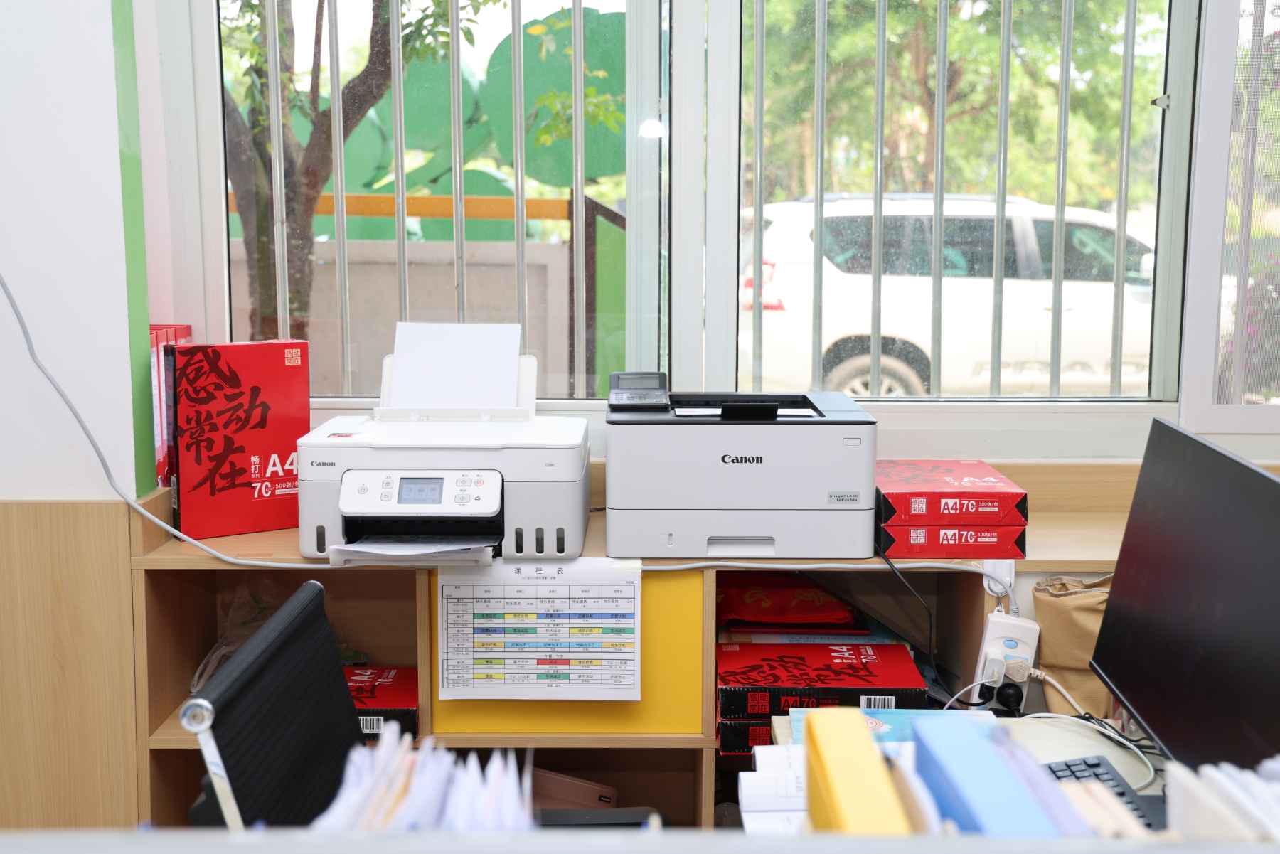 佳能捐赠的G3891、LBP243dw打印机及代表企业文化的感动常在复印纸,