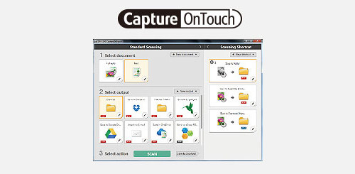 CaptureOnTouch V3通过新界面,提供更简单、高效扫描,常规扫描任务比如扫描到电子邮件或扫描到桌面,都可以通过单触按钮实现。两种扫描方法可用,来满足多种扫描需求,包括集中扫描和日常扫描。“标准扫描”的扫描模式和输出方法可以单独设定,并且有“扫描快捷键”,特定的扫描模式和输出方法可以提前设定,允许单触式操作。