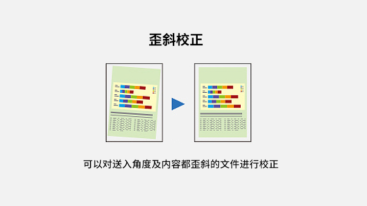 此功能可以拉直歪斜的图像。可以根据文稿的送入角度以及文稿内容进行校正,以创建高度清晰的图像。
