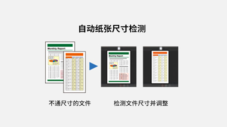 扫描一批不同尺寸混合文档时,无需提前对文档尺寸进行分类,只需将其装入扫描仪,该批文档中的每个页面即可获得适当尺寸的图像,省时省力。