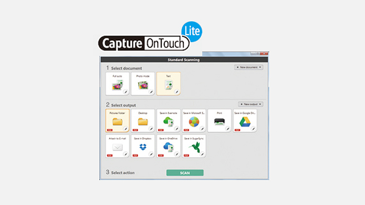 该软件已经提前内置在R10里,可实现即插即扫描,不需要提前安装驱动和扫描软件。采用和CaptureOnTouch一样的面板类型界面,可编辑,更直观、易理解。并且CaptureOnTouch标准功能的使用方法也可以用在CaptureOnTouch Lite上,实现顺利扫描。同时还可使用其他插件,支持多种类型输出。