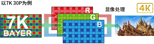 7K的高清晰度不仅实现了丰富的视频表现力,还实现了对7K RAW素材进行4K裁切等灵活自由的工作流程。在XF-HEVC S、XF-AVC S格式下录制4K视频时,可通过对其进行超采样实现4K 4:2:2 10 bit的高画质录制,获得更为清晰的视频表现力。