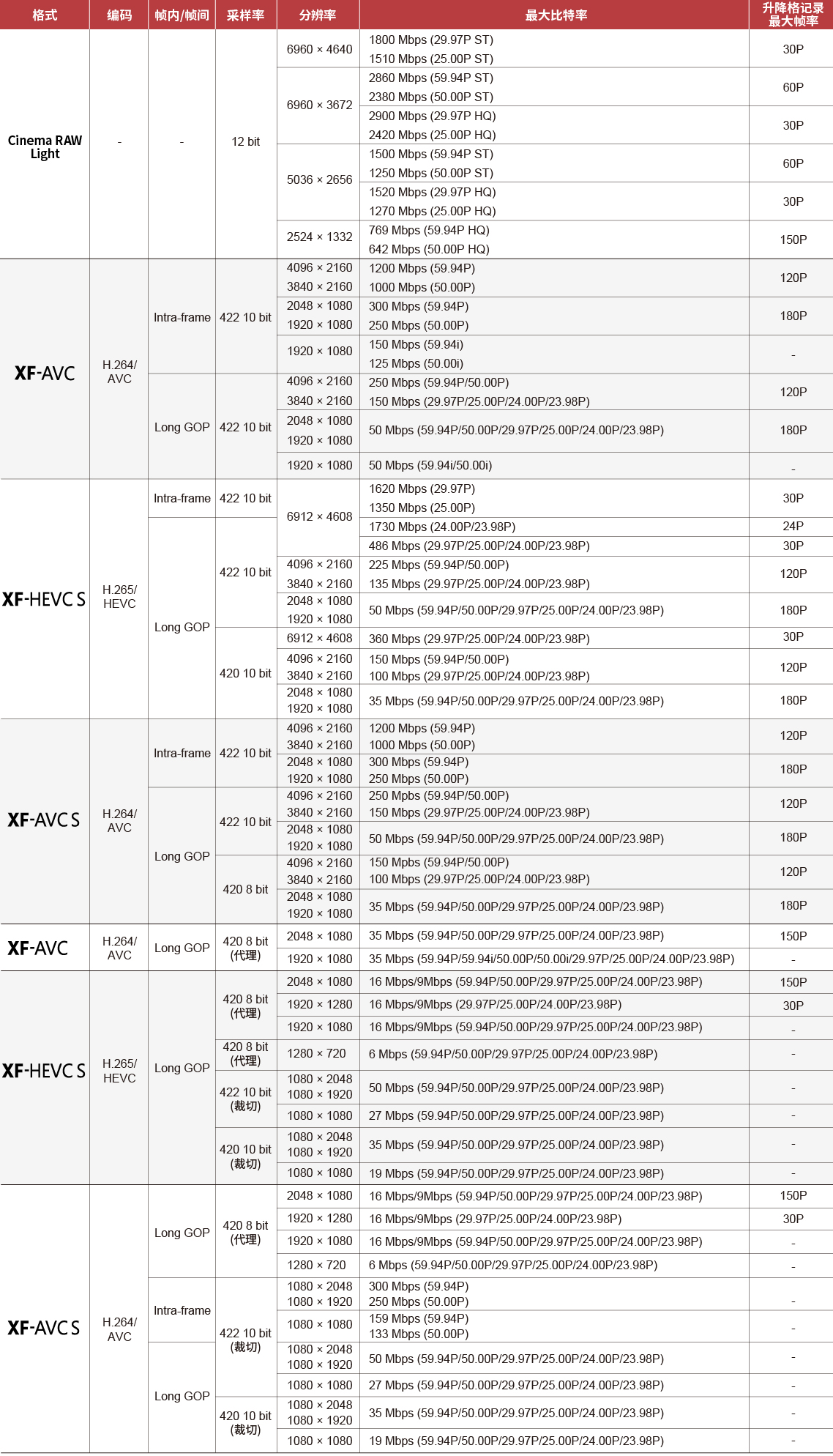 * 仅在记录Cinema RAW Light / XF HEVC S时支持。