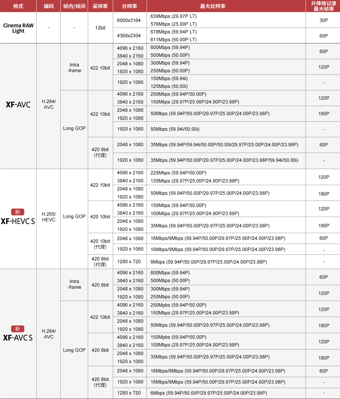 *录制XF-AVC、XF-HEVC S、XF-AVC S时,图像感应器模式选为全画幅,帧率不高于60P/50P。