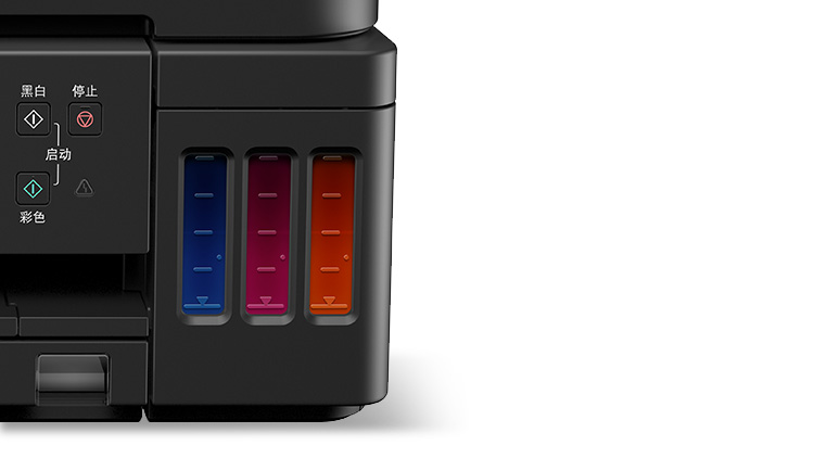 采用佳能新型研发的瓶装墨水,黑色墨水GI-80PGBK(170ml)打印量可达到6000页(经济模式8300页),彩色墨水GI-80C/M/Y(各70ml)打印量可达到7700页。经济节省,满足小型办公用户日常大批量的打印需求。