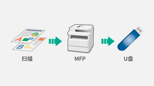 将USB插入一体机接口,可将扫描数据直接保存至USB端。支持PDF/JPEG/TIFF格式的文件。