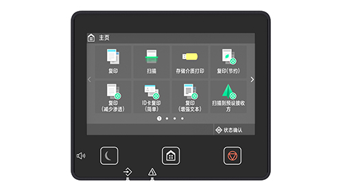 配备5英寸彩色触摸显示屏,直观操作各项功能。用户可按照日常业务需要自定义打印机主页,在主页添加各项常用工作(如2合1复印,扫描至共享文件夹等)的快捷键,有效减少繁琐步骤,提高工作效率。自定义图标为图像+文字的形式,更加生动易懂。