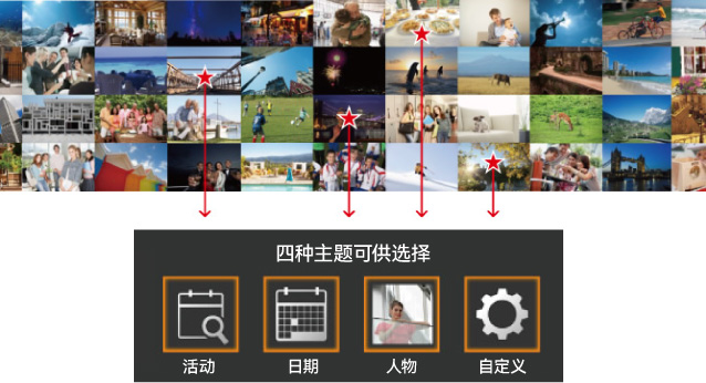 面对相机中大量的影像,用户往往无暇整理和选择,使用“故事集锦”功能,通过佳能先进的算法,可以让相机从海量的照片、摘要短片、片段短片和创意拍摄短片中自动甄选并生成短片(相册),这是一种新的数码相机使用方式。