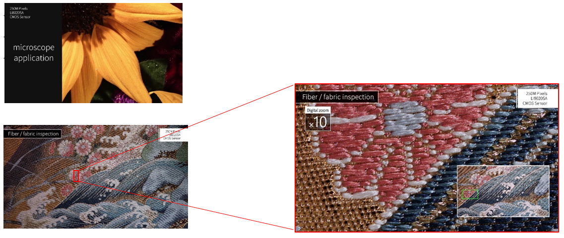 LI8020SAC 与 LI8020SAM 能以 2.5亿像素的高分辨率捕捉影像,此分辨率约为 Full HD(1920 x 1080 像素)的 125 倍、约为 4K(3840 x 2160 像素)的 30 倍,让使用者可裁切选取区域和数位放大或缩小影像,同时仍保持够高的分辨率。由于 CMOS 影像传感器的像素数与信号量增加,因此会导致信号延迟和时序中有微小差异等问题。不过,这些新传感器不仅具备约 2.5亿像素的高像素数,更搭载小型化电路与强化后的信号处理技术,可提供每秒约 1,250 百万像素的高像素读出速度。这让传感器即使在全像素读出期间,也能以大约每秒 5 FPS的速率捕捉高分辨率的影像。