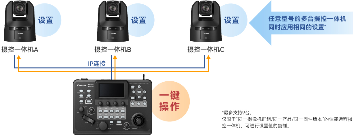 支持多台摄控一体机同步设置,可快速统一应用预设参数。
