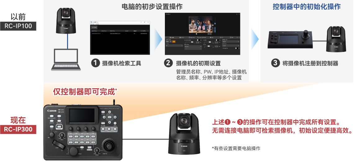 支持通过控制器直接完成摄像机检索、用户名ID及密码的设置,无需连接电脑即可进行初始配置。同时支持多台设备批量初始化,大幅缩短部署时间。