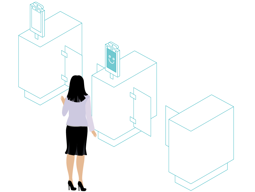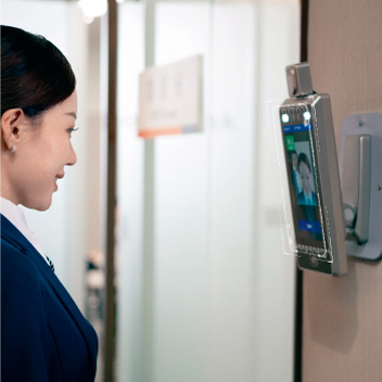 独自のアルゴリズム顔認証技術をもとに、タッチレスで入退室。カードや指紋認証、パスワード入力を省きます。