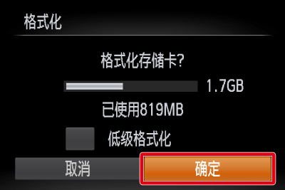 - 在执行低级格式化时,选择 [低级格式化],然后左右操作 <方向按钮> 以便显示 (