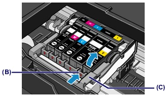 - 如果取出墨水盒,请立即更换。 请勿让打印机处于没有墨水盒的状态。