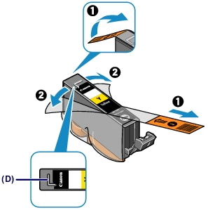 - 如果橙色胶带仍留在L形气孔(D)上,墨水可能会溅出或打印机可能无法正确打印。