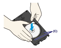 - 将可打印光盘放入光盘托盘时,请勿触摸光盘的打印面或光盘托盘上的反射镜(C)。