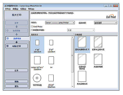 6. 在屏幕左侧的步骤按钮区域中单击选择纸张。