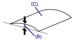 - 根据介质类型,即使纸张未向内卷曲也可能出现污迹或无法正确送入。 在这种情况下,打印前请按照以下描述的步骤向外卷曲纸张,并且高度在0.1英寸/3毫米(B)以内。 这可能会改善打印效果。