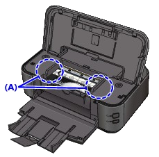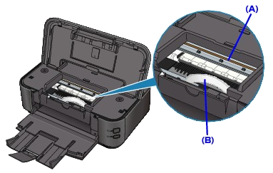 - 打印机内右侧或左侧空间(A)中是否残留纸张碎片?