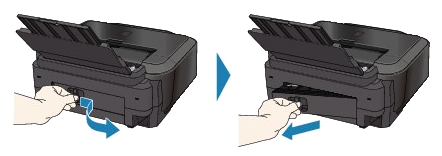 如果后端托盘中有任何异物,请务必关闭打印机,从电源插座拔出打印机插头,然后取出异物。