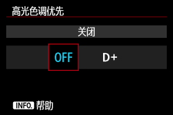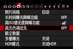 ] 选项卡下的 [高光色调优先] 设置为 [启用],则可设置的 ISO 感光度(图像感应器敏感度)范围将是 ISO 200-25600(对于短片拍摄则最高为 12800)。您不能设置“L”(ISO 50)、ISO 100/125/160、“H1”(ISO 51200) 和“H2”(ISO 102400)。