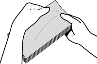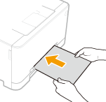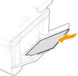 - 在 MF635Cx / MF633Cdw / MF631Cn 上,一次只能将一个信封装入手送纸槽。请在装入前按照以下步骤中的步骤 1 至 3 准备信封。