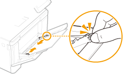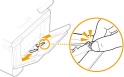 - 按下锁定解除控制杆向外滑动纸张导板。