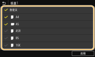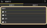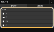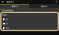 - 未选择的纸张尺寸可以通过在纸张尺寸设置选择画面中选择 <其他尺寸> 选项卡来查看。