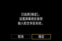 | 结束文本输入 | 按下 < MENU > 按钮可确认已输入的内容并退出。如果显示确认对话框,则选择 [确定] 以退出。 | |