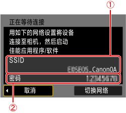 - 查看显示在相机液晶监视器上的 SSID(网络名称)(