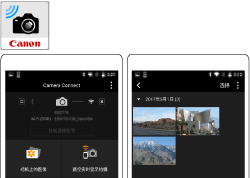 - 由于相机的固件更新或 Camera Connect、Android、iOS 等应用程序更新原因,相机以及 Camera Connect 的界面或功能可能会发生变化。这种情况下,相机或 Camera Connect 的功能可能与本手册中的示例屏幕或操作说明有所不同。