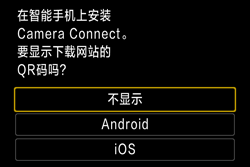 - 在安装 Camera Connect 前兼容 NFC 的智能手机与本相机接触时,会在智能手机上显示 Camera Connect 下载屏幕。