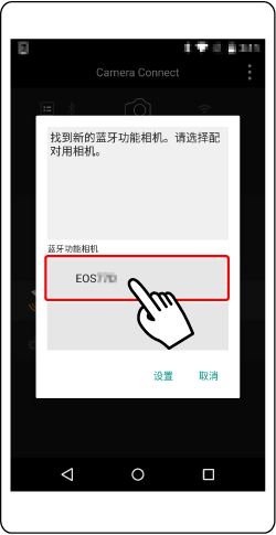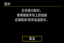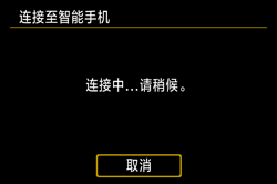 - 根据智能手机的不同,识别可能会有困难。请慢慢接触并改变位置或水平旋转。如果未建立连接,请保持相机与智能手机接触,直到相机屏幕更新。
