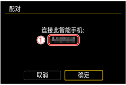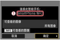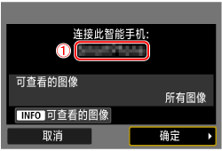 - iOS:在智能手机的 Wi-Fi 功能屏幕上,选择相机上显示的 SSID(网络名称)和密码以便建立连接。