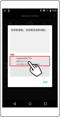 - Android:在 Camera Connect 中选择 [相机上的图像] 后,将自动建立 Wi-Fi 连接。