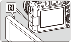 - 以下情况无法使用 NFC 功能建立 Wi-Fi 连接:使用本相机拍摄时、未安装存储卡、屏幕朝内时关闭液晶监视器或相机使用接口连接线连接到其他设备时。