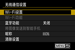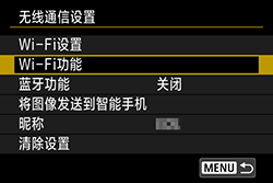 ] 设置页下选择 [无线通信设置],然后选择 [Wi-Fi 功能] 返回到 [