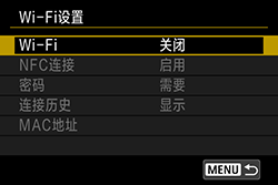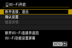 - 如果将相机电源设为 <OFF> 或打开存储卡插槽盖或电池仓盖,Wi-Fi 连接将中断。